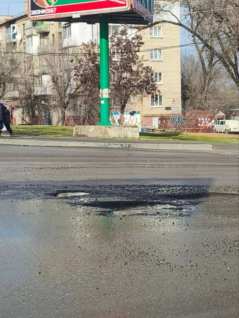 В оккупированном Луганске отремонтированные участки асфальта сошли вместе со снегом. От ремонта не осталось и следа.