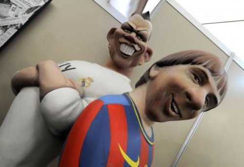 Специально к испанскому празднику Фальяс, отмечающемуся в середине марта, изготовили фигуры Криштиану Роналду и Лионеля Месси, способные светиться в темноте. Фото AFP ЧЕМПИОНАТ ИСПАНИИ. ПРИМЕРА. 29-й тур