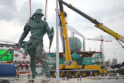 Перед северной трибуной футбольного стадиона московского «Спартака» «Открытие-Арена» закончили устанавливать скульптуру древнеримского гладиатора.