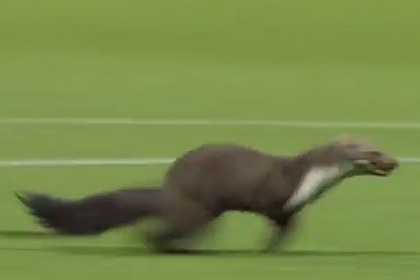 Животное появилось на газоне в середине первого тайма. Футболистам пришлось остановить игру и подождать, пока заблудившийся хорек найдет выход с поля.