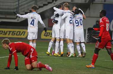 С начала встречи киевляне не спешили и спокойно контролировали мяч в центре поля. К середине первого тайма начали появляться неплохие моменты у обеих команд. Игра набирала динамичности и на 40-й минуте Андрей Ярмоленко забил первый мяч. Голевую передачу на свой счет записал Джермейн Ленс.