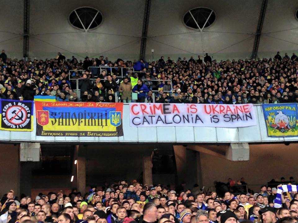 Во время футбольного матча Украина-Испания отборочного этапа Евро-2016 симферопольские болельщики вывесили баннер «Крым — это Украина».