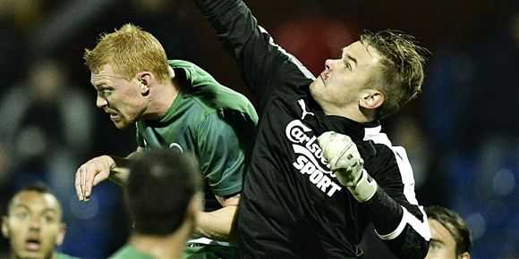 Голкипер киевского "Динамо" Максим Коваль, который сейчас выступает за "Оденсе" на правах аренды, сильно получив бутсой в лицо, сумел продолжить игру и спасти партнеров от поражения.