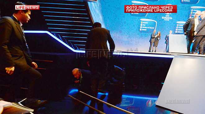 64-летний Висенте Дель Боске не заметил края сцены, на которой фотосессия главных тренеров участниц Евро-2016, сделал шаг в пустоту и упал. Упал прямо к ногам гостей жеребьевки, сообщает ресурс LifeNews.