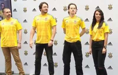 Новая экипировка представлена в национальных цветах Украины - желтом и синем. Изготовлена форма традиционно для последних лет компанией adidas.