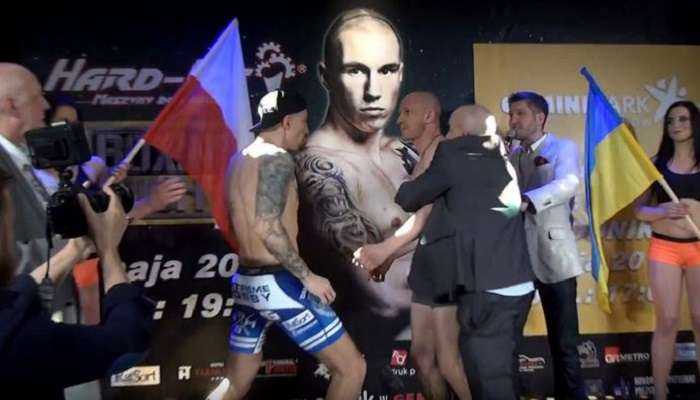 Украинский и польский боксеры в полутяжелом весе чуть не устроили поединок на церемонии взвешивания. Однако все закончилось небольшой дракой.