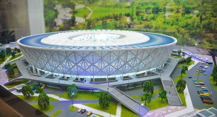 Строители завершили работу над основным зданием стадиона, где пройдут матчи ЧМ по футболу в 2018 году. Этот стадион расположен, как известно, в Волгограде, РФ.