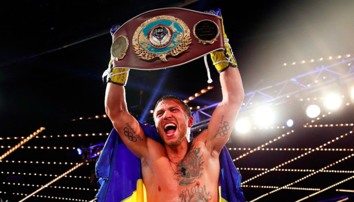 Украинский боксер Василий Ломаченко завоевал титул чемпиона мира по версии WBO во втором полулегком весе, отправив в нокаут пуэрториканца Романа Мартинеса.
