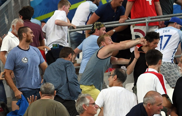 Во время встречи на стадионе в Марселе в секторе российских болельщиков была зажжена петарда. После финального свистка группа российских болельщиков, перепрыгнув через перила, ворвалась в английский сектор. По данным сайта Р-Спорт, хулиганы хотели сорвать флаги команды соперников. По данным УЕФА, такое поведение не только противоречит духу спорта, но и несет в себе угрозу безопасности стадиона.