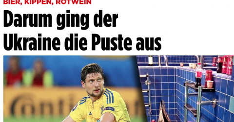 По мнению журналистов немецкого издания, футболисты сборной Украины пытались унять горечь поражения в матче с Германией алкоголем. Более того, согласно утверждению, которое распространил Bild, распитию алкоголя спортсмены предавались прямо в раздевалке и душевой.