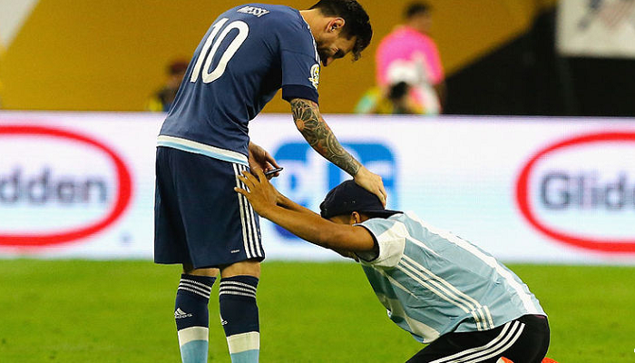 Один из фанатов аргентинской звезды футбола Лионеля Месси прорвался к нему на футбольное поле во время матча 1/2 финала Кубка Америки, когда сборная США играла с Аргентиной. Неизвестный беспрепятственно подошел к капитану аргентинской сборной, после чего поклонился ему и несколько раз обнял.