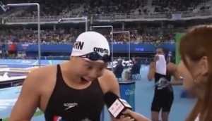 Представительница Китайской народной республика на Олимпиаде в Рио-де-Жанейро продемонстрировала всему миру свои радостные эмоции, узнав о том, что она побила собственный рекорд по плаванию на скорость.