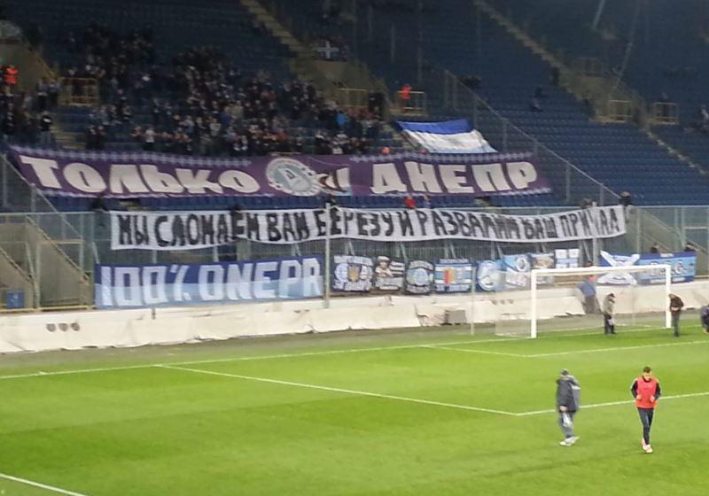 Перед матчем ультрас "Днепра" вывесили на секторе баннер с провокационной надписью "Мы сломаем вам Березу и развалим ваш Причал". После, уже в перерыве, неожиданно ворвались на сектор "Днепра-1" избили фанатов, после чего отобрали у них баннеры и барабан. Отобранная у ультрас "Днепра-1" атрибутика была сожжена на секторе ультрас "Днепра".