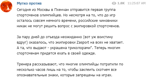 Перед вылетом в Пхенчхан спортсмены столкнулись с неожиданной проблемой. Конькобежцам, лыжникам и хоккеистам не пошили новые комплекты. Официальный экипировщик национальной олимпийской сборной Zasport выдал им форму с атрибутикой, которая попала под запрет на Играх.