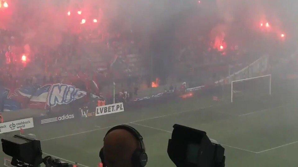 Болельщики решили устроить огненное шоу. Во втором тайме они зажгли фаеры. На 51-й минуте поле затянуло дымом, а арбитр решил приостановить матч и увести команды под трибуны, передает Час Пик со ссылкой на зарубежные СМИ.