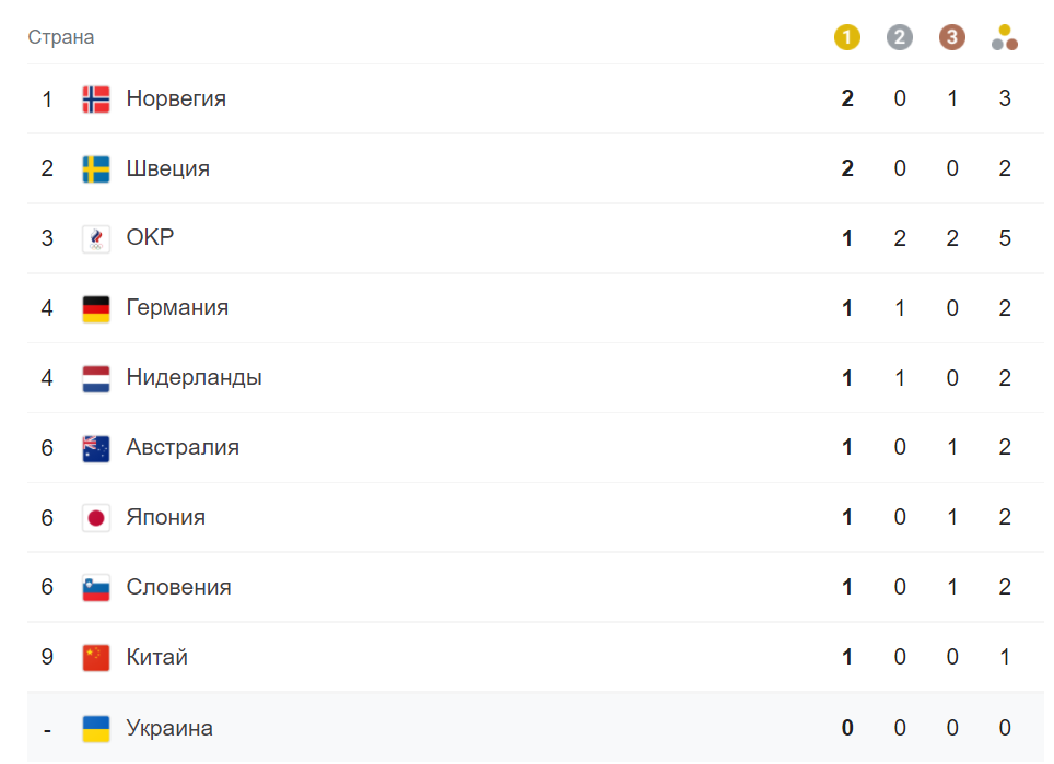 По состоянию на 6 февраля, на зимней Олимпиаде-2022 в Пекине лидерство в медальном зачете сохраняет Норвегия.