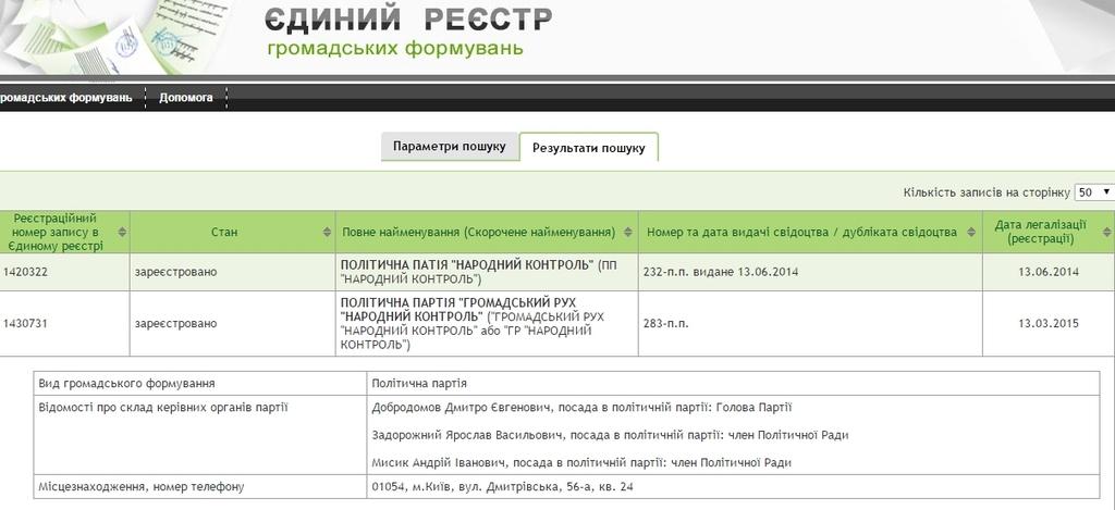 - Дополнительные параметры: статус общественного объединения (всеукраинское, международное, местное и др.), направленность (молодежное, профессиональное, правозащитное и др.), вид (общественная организация, профсоюз, кредитный союз)
