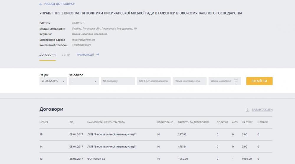 - договоры стоимостью более 1 млн грн. (Предмет, исполнитель, стоимость договора, цена за единицу (при наличии), срок действия договора)
