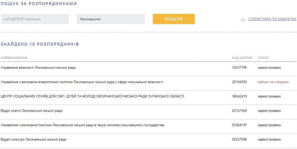 Для поиска распорядителя необходимо ввести его код по ЕГРПОУ или его наименование. Причем, не обязательно вводить полное название, достаточно ввести его часть. А потом выбрать нужное из предложенного списка.
