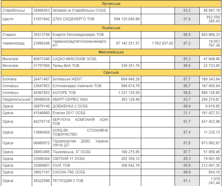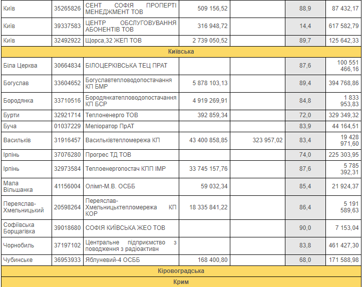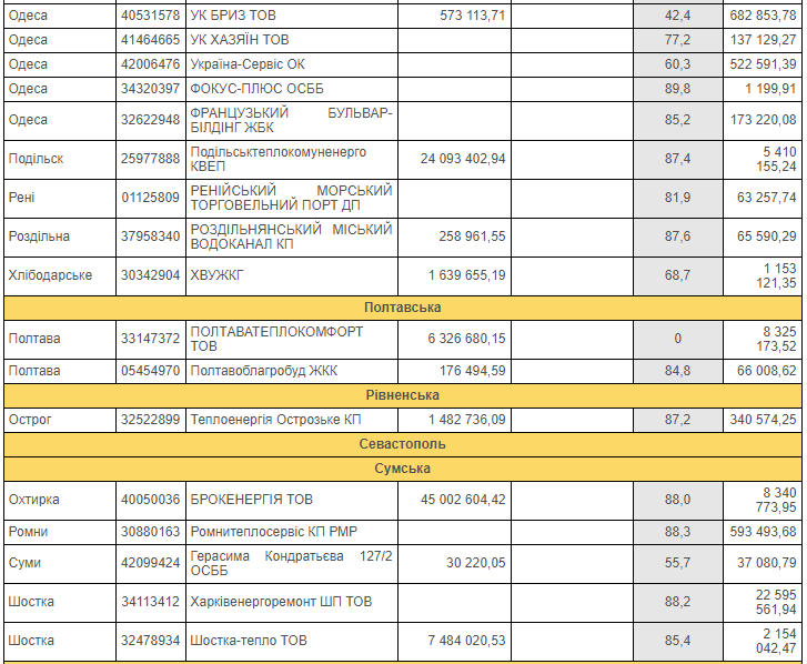 Нафтогаз завчасно публікує перелік критичних боржників, щоб мешканці кожної області могли перевірити, чи входить місцеве підприємство до їх числа.
