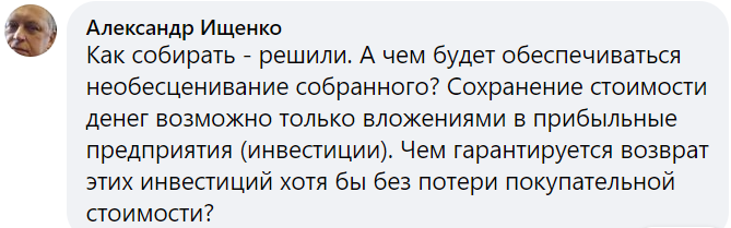 Як зазначив Вулах, 4% від середньої зарплати 10 000 грн - це 400 грн на місяць, а за рік накопичиться близько 5000 грн. За 30 років трудового стажу таким чином вдасться накопичити приблизно 150 тисяч грн: сума в масштабах життя не дуже велика, до того ж її купівельна спроможність навряд чи буде такою ж через 30 років, як сьогодні.