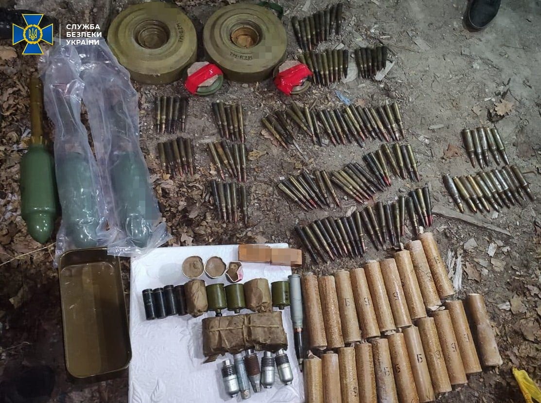Схрон був облаштований на відкритій території в районі міста Щастя, поблизу лінії розмежування. Зі схованки правоохоронці вилучили півкілограма пластиду, дві протитанкові міни ТМ-62М, майже півкілограма тротилу, дев’ять гранат РГ-42, сім пострілів ПГ-7 та ВОГ-17. Також виявлено понад сто набоїв різного калібру і двадцять димових шашок.
