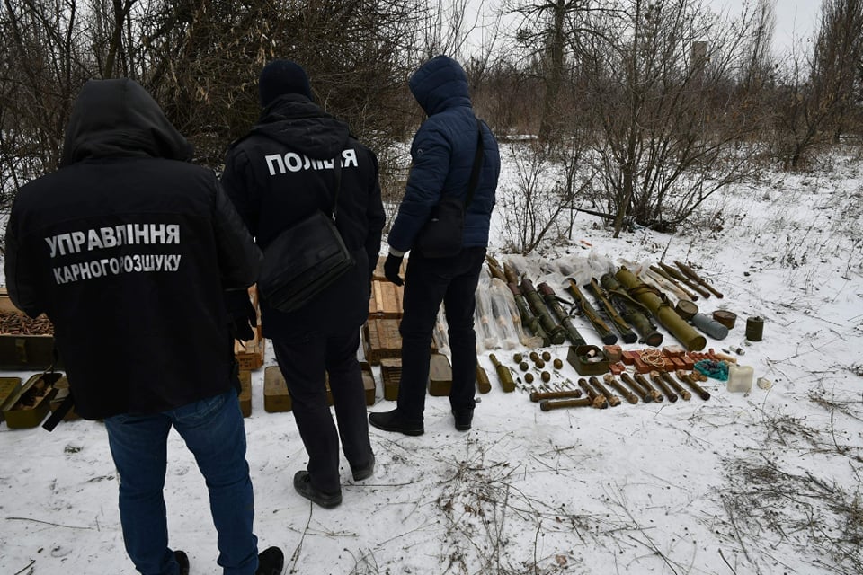 Оперативники Управління карного розшуку, співробітники поліції Лисичанська, вибухотехніки ГУНП спільно зі співробітниками СБУ та фахівцями ДСНС, під час перевірки оперативної інформації, виявили схованку зброї та боєприпасів бойовиків так званої "ЛНР". Загалом зі схрону було вилучено більше 8000 смертоносних предметів.