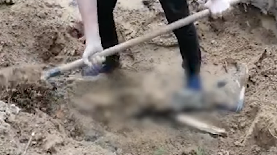 За попередніми даними, окупанти намагались приховати сліди знущань над українськими громадянами, тому скинули тіла в яму і засипали землею.