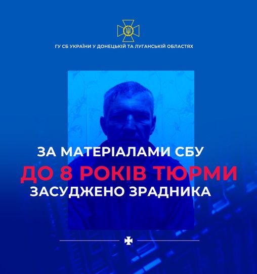 Чоловік допомагав РФ і передавав дані про українських військових у Лисичанську та Рубіжному (Луганська область). За це його засудили до 8 років позбавлення волі.
