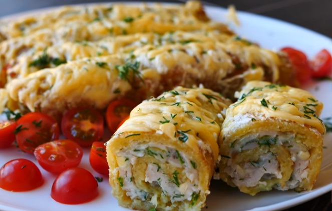 Млинці виходять зовсім не жирними, так як доготовляються у духовці, але за допомогою начинки виходять соковитими і ніжними. Спробуйте приготувати це чудове блюдо, і вам обов'язково захочеться поласувати ними ще не один раз. Приємного всім апетиту!