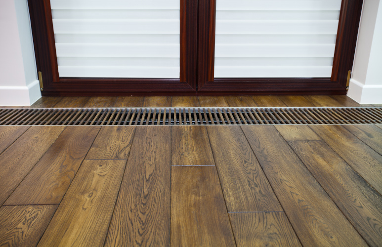 У такій ситуації перевіреним і ефективним рішенням опалення з високими декоративними якостями є канальні конвектори - унікальна форма радіатора, прихованого під підлогою. На його поверхні є лише декоративна решітка для виходу нагрітого повітря. Це спосіб «опалення без радіаторів». Невіддільною частиною поверхні залишається підлогова решітка з деревини кольору паркету. Оскільки дерев'яна сітка поставляється незабарвленою, її можна фарбувати будь-яким кольором. Також доступні анодовані алюмінієві решітки.