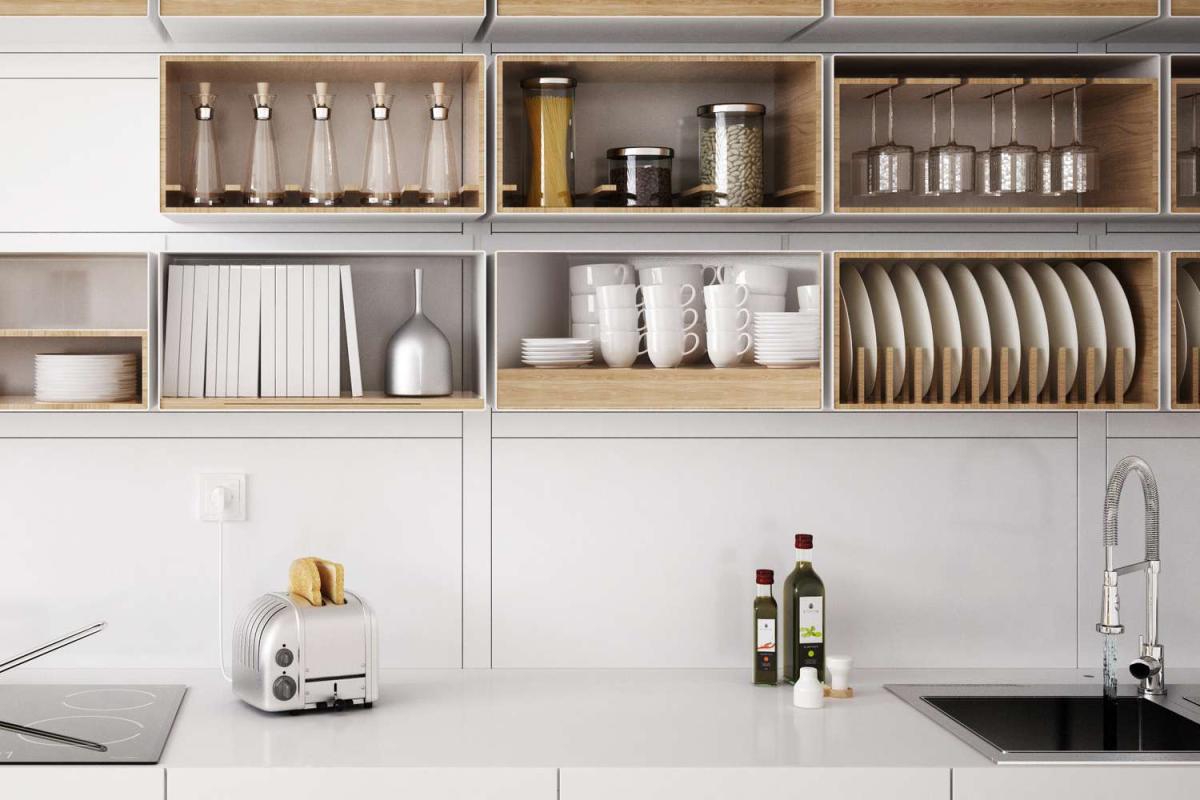 Сучасна кухня має бути не тільки практичною, але й естетичною. Обирайте прозорі контейнери для зберігання – вони допоможуть швидко знайти потрібний предмет. Для вологих зон використовуйте аксесуари з водовідштовхувальних матеріалів, які захистять вміст від вологи.