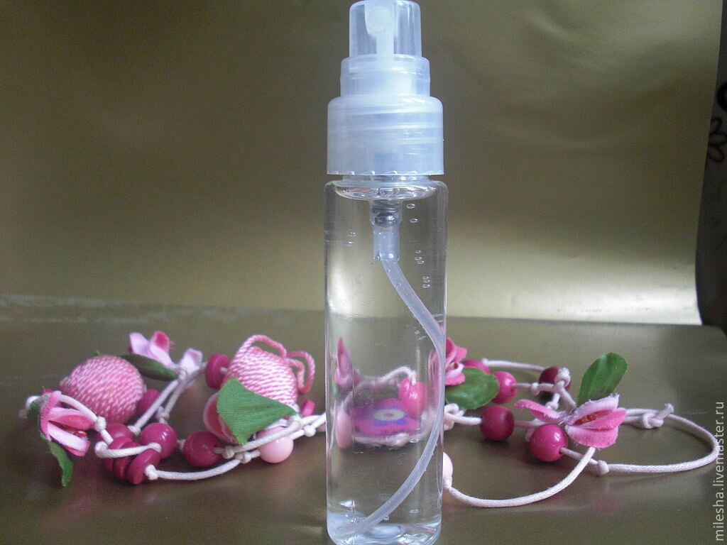 Заливаємо всі інгредієнти в ємність з розпилювачем і струшуємо. Наш натуральний спрей готовий. Використовувати його потрібно до того, як він втратить свої корисні властивості, а це всього два дні. Потім готуємо нову порцію.