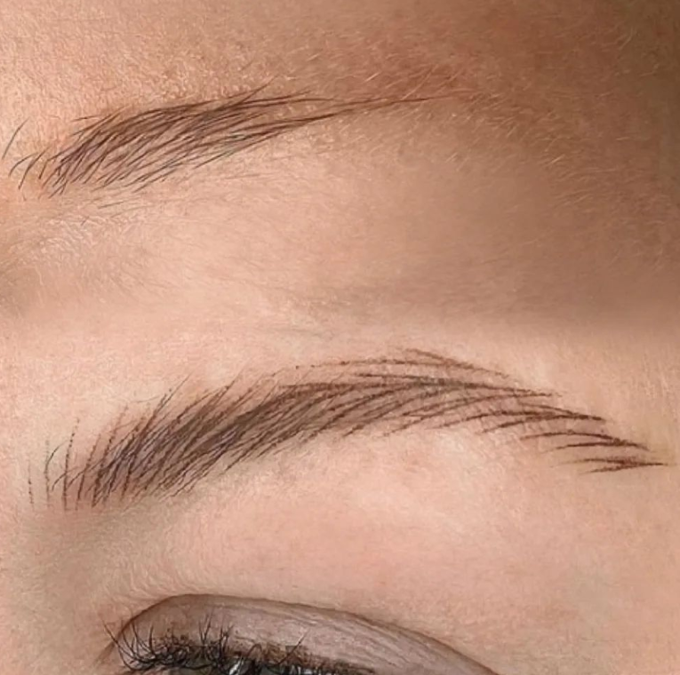 ● Волоскова техніка передбачає вимальовування кожного волоска окремо паралельними лініями однакової товщини або вільнішими штрихами різної товщини для імітації природного росту волосся. Дана техніка підійде тим, у кого рідкі та тьмяні волоски. Перевагою такого виду перманентного макіяжу є його природність та стійкість, ефект триває аж до 3 років.