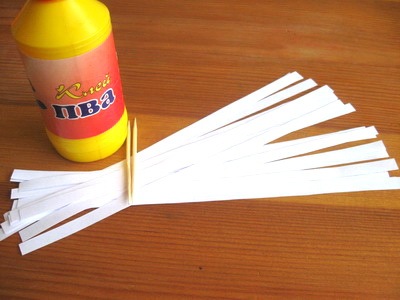 Можна накручувати смужку на зубочистку, а можна скручувати спіральки й руками. Для цього один кінчик смужки підгинаємо і починаємо скручувати. Скрутили до самого кінця та отримали тугу спіральки. Трошки треба попустити, щоб спіралька розкрутилася і вийшла вільною. Вільний кінчик приклеюємо до спіральки. Так виходить одна заготівля. Аналогічно робимо і з іншими смужками. В результаті у нас вийде 18 заготівель.