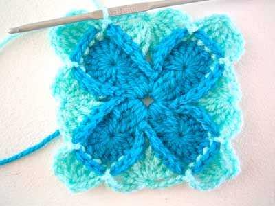 Цей елемент можна залишити такого розміру, зв'язати ще безліч таких самих, а потім зшити в єдиний плед. А можна продовжувати ряди, щоб отримати елемент більшого розміру. Тільки враховуйте, що з кожним рядом кількість ниток на одну кольорову смугу буде збільшуватися.