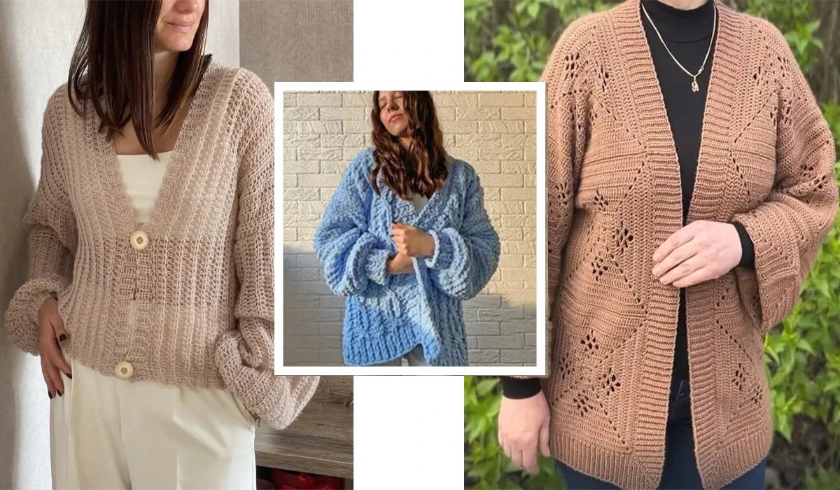 А тепер найцікавіше — три варіанти кардиганів, які обов’язково захочеться спробувати. І не хвилюйтесь: серед них є і для новачків, і для тих, хто вже вміє в’язати на рівні «багаторічний стаж».