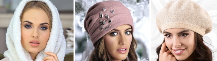 У цьому випадку вітаються шапки з відворотом, велика в'язка з хутряними помпонами, кепі, тюрбани.