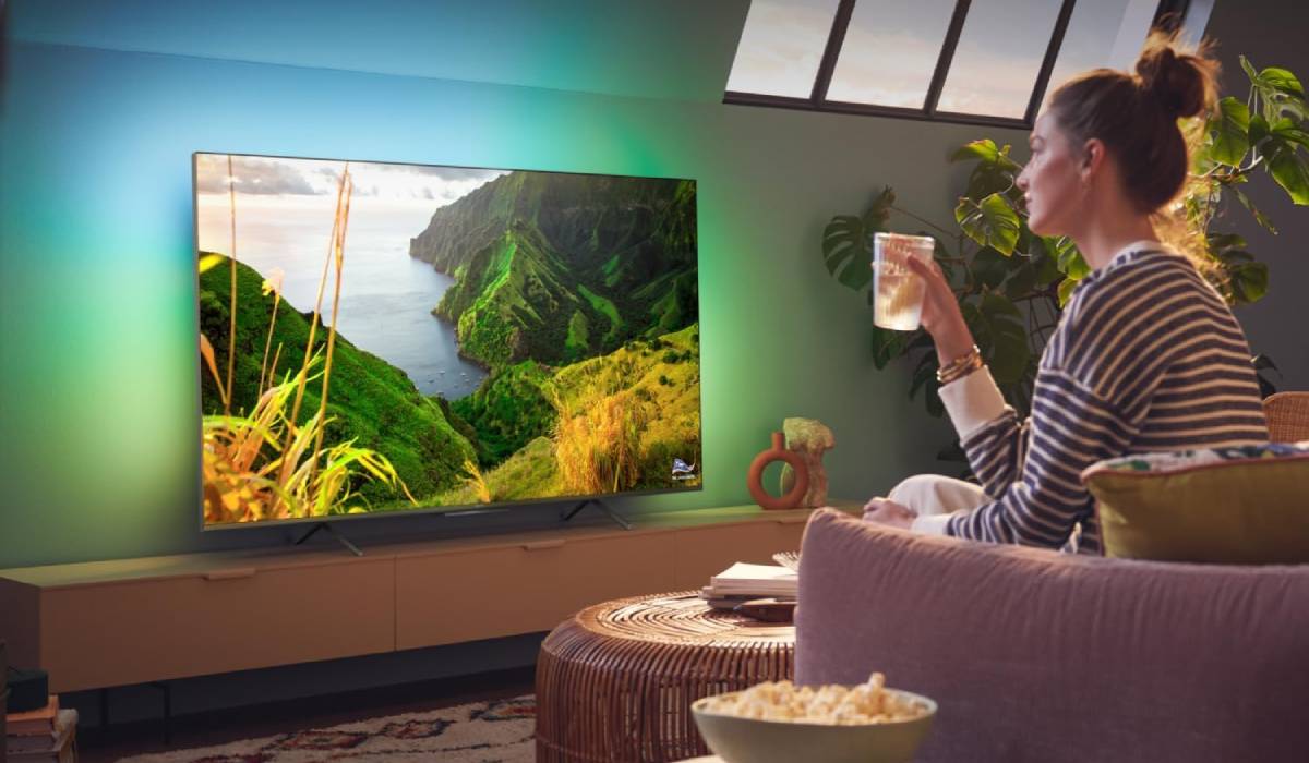 Сучасний телевізор Philips вирізняється унікальною технологією підсвічування Ambilight, яка створює неповторний ефект занурення під час перегляду контенту. Ця інноваційна система підсвічування розширює візуальні межі екрана, проєктуючи кольорове світло на стіну позаду телевізора. Завдяки цьому зображення виходить за рамки екрана, створюючи атмосферу повного занурення в те, що відбувається.