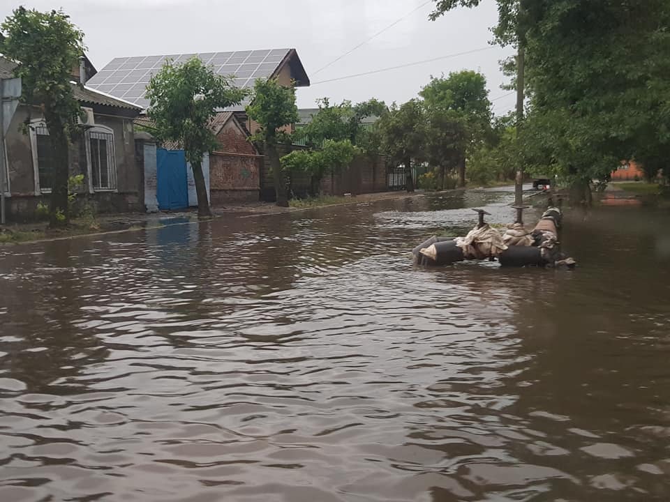 У нижній частині міста на вулицях було по коліно води. Шквальний вітер ламав дерева і обривав дроти. На Бердянській косі в результаті удару блискавки сталася аварія на високовольтній лінії. Без світла також залишилися Військове містечко і частково центр міста.