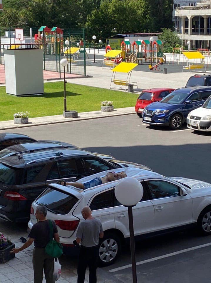 Повідомлення про те, що невідомий упав на припаркований у дворі будинку автомобіль, надійшло до поліції 28 липня о 13:25.