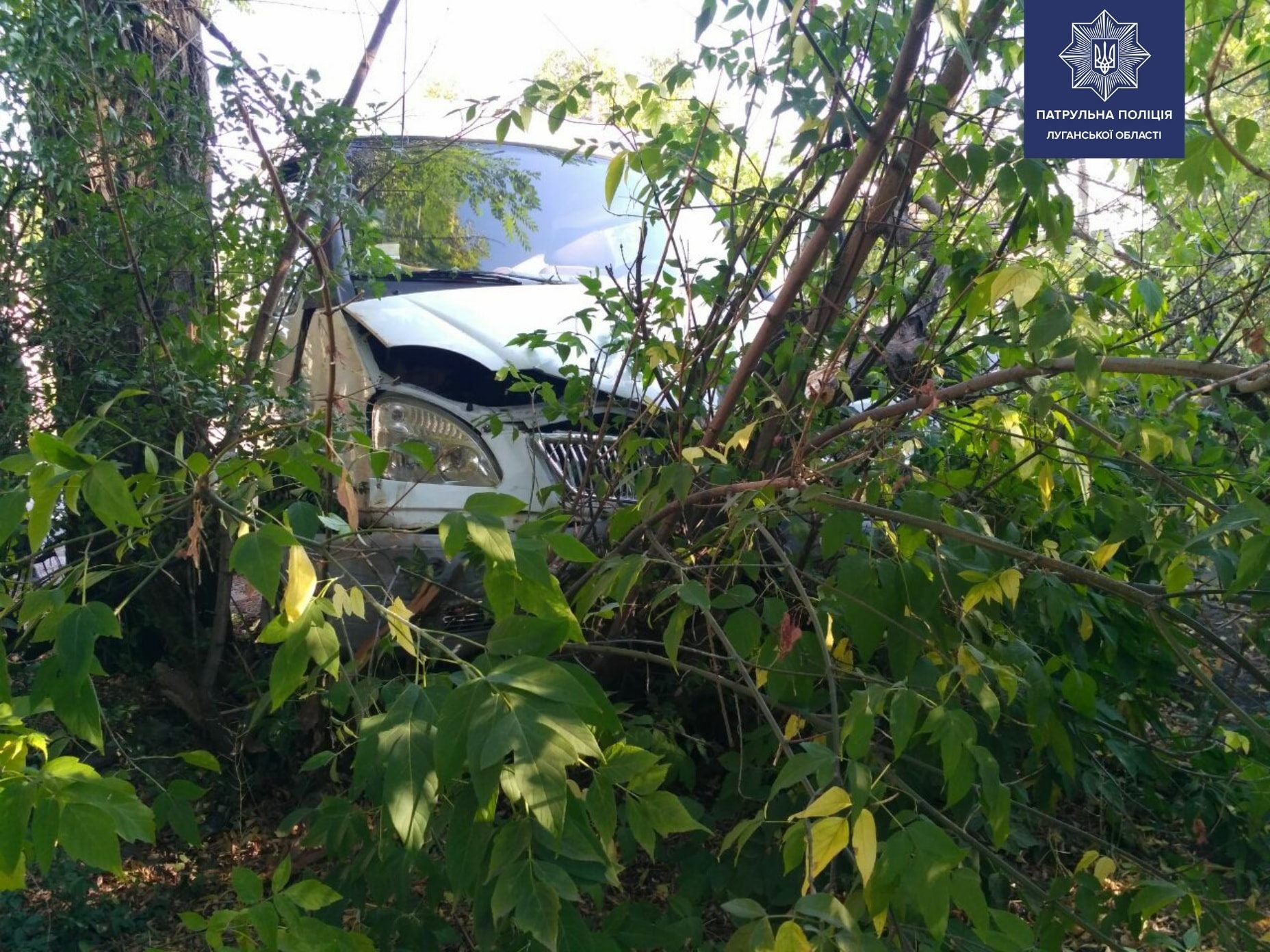 Цього ранку у Лисичанську на вулиці Малиновського водій автомобіля ГАЗ не впорався з керуванням, виїхав за межі проїзної частини та зіткнувся з деревом.