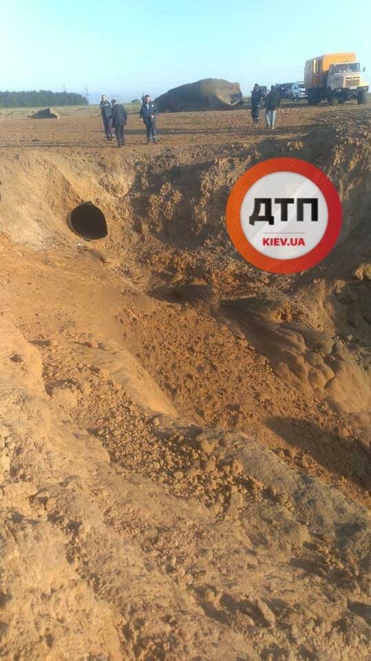 На місці пориву магістрального газопроводу високого тиску біля селища Чабани на Київщині утворився котлован, з якого вирвало шматок труби.