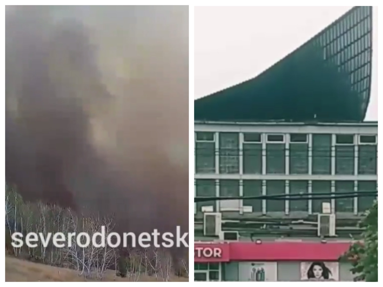 Фейсбук-спільнота "Северодонецк Times" оприлюднила відео пожежі в Муратово. Також опубліковані кадри, зняті в районі центрального ринку Сєвєродонецька, на яких з будівлі вітром зриває дах.