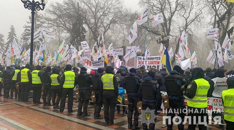 У поліції заявили, що мітингарі обмежують доступ народним депутатам України до території ВРУ та блокують рух транспорту.