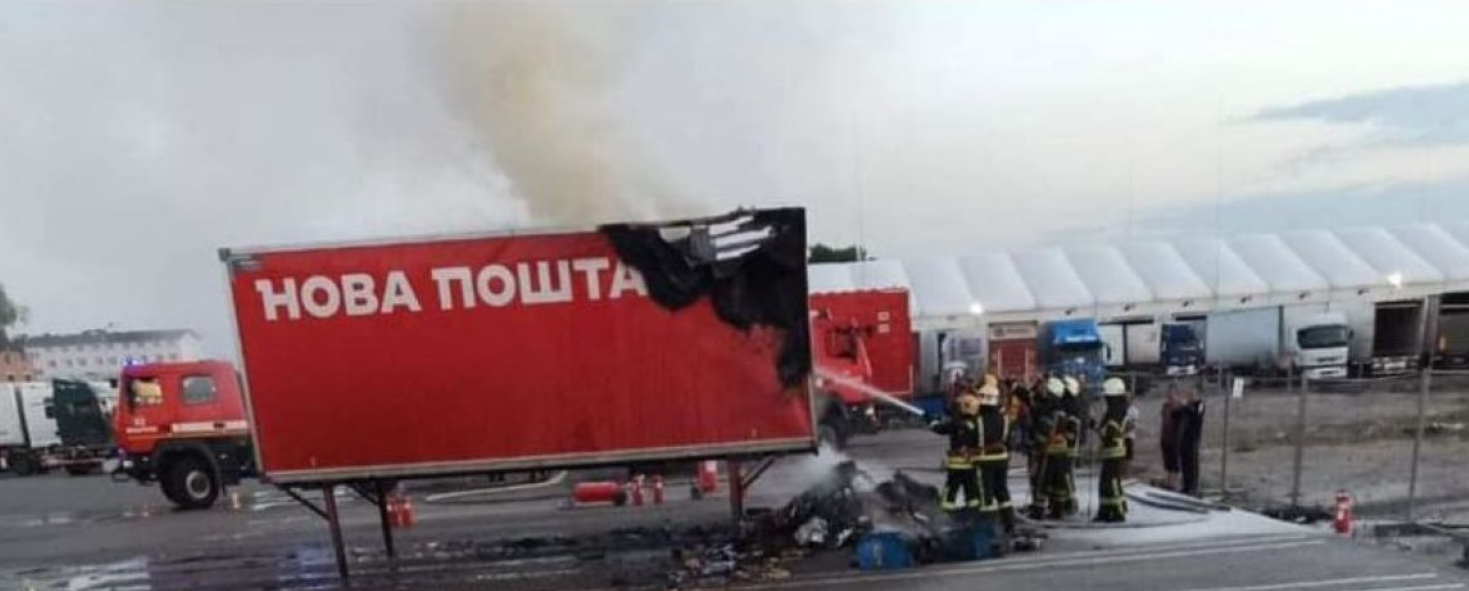 На території Київського терміналу в Жулянах загорівся причіп з посилками "Нової пошти". Значну частину відправлень повністю знищено.
