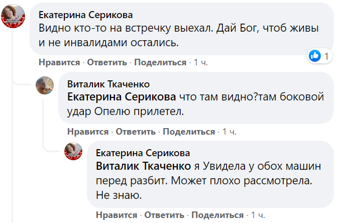"Прибувши на місце події, рятувальники аварійно-рятувального загону спеціального призначення за допомогою різака та розтискача "Weber" деблокували водія з поневіченого автомобіля "OPEL Omega", 1949 року народження та передали фахівцям екстреної медичної допомоги. Пасажирку цього ж автомобіля, 1949 року народження, було госпіталізовано до прибуття рятувального відділення. Водій іншої автівки, 1980 року народження, від госпіталізації відмовився.