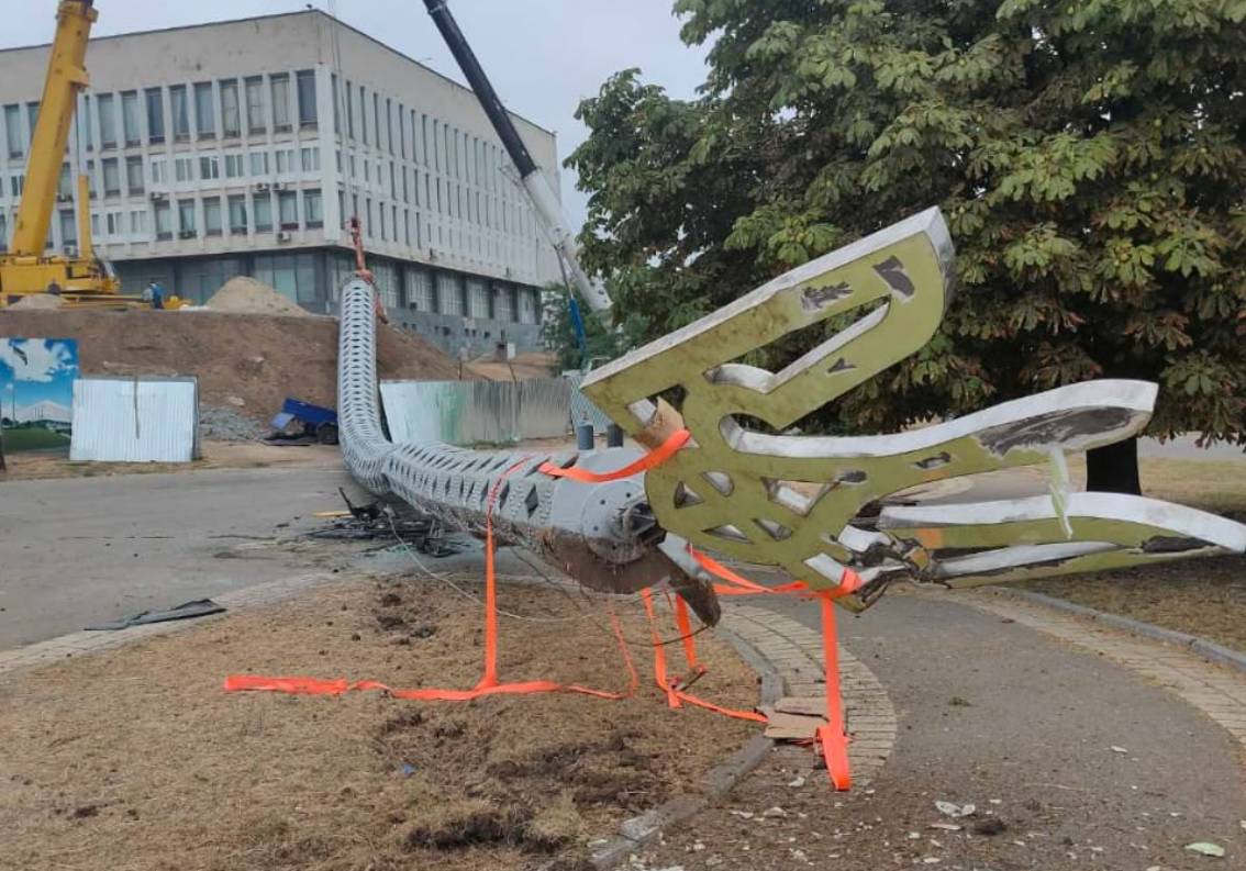 За фактом падіння в Херсоні найвищого в області флагштоку поліція відкрила кримінальне провадження за двома статтями.