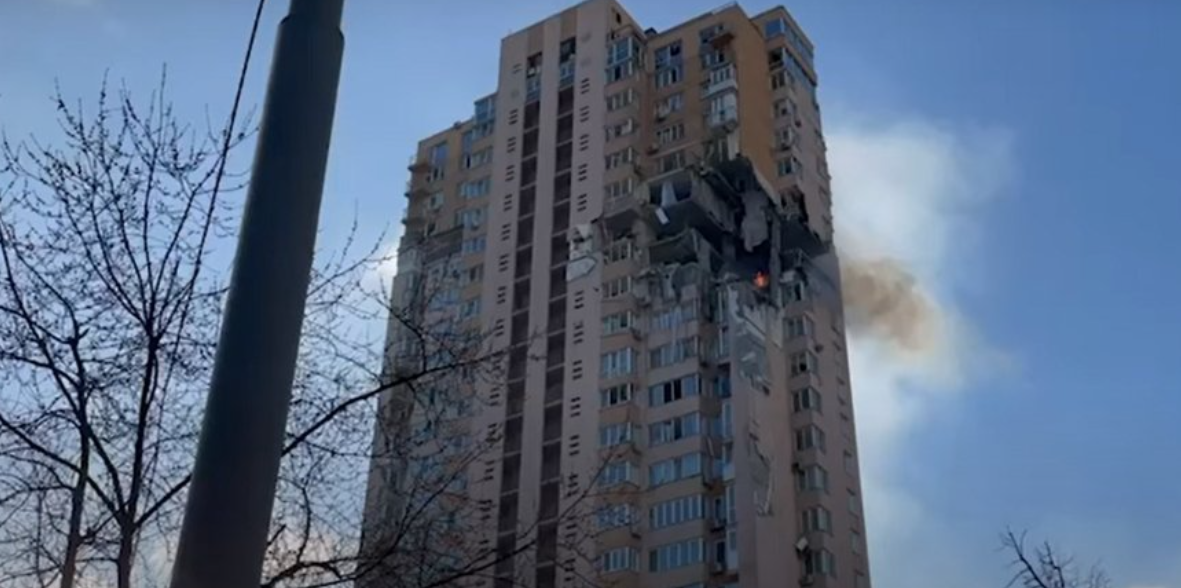 Під час повітряної атаки на Київ російська ракета потрапила у багатоповерхівку в Солом'янському районі столиці. Зруйновано п'ять поверхів 24-поверхового житлового будинку. Інформація щодо жертв та постраждалих уточнюється.