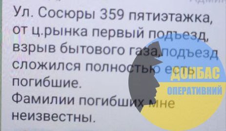 У чатах пишуть, що у під'їзді жили 2 людини: чоловік на 5-му поверсі (загинув) та бабуся на 2-му, про її долю інформації немає.
